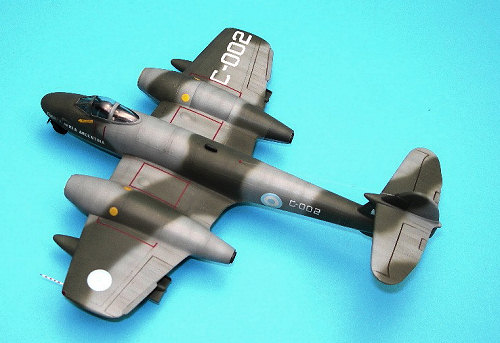 Instructions are typical Frog in that they are well done and provide no interior or well color information. In fact, no color information is given at all aside from the overall aluminum recommendation of the decal placement guide on the bottom of the box. Markings are given for two aircraft. One is a Dutch aircraft from 323 squadron as shown on the box art. The other is from 263 squadron, RAF, both in overall aluminum. I do believe that this color was lacquer paint and not unpainted metal. (Kit description courtesy your editor)