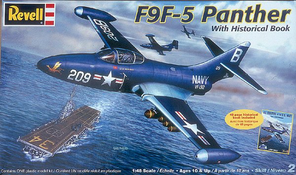 Revell has just re-issued the F9F-5 Panther kit in 1/48th scale. Originally tooled and released in 1990, the kit features raised panel lines. Changes to the model include: modeler friendly neutral gray plastic rather than the dark blue previously seen; a nice decal sheet, featuring a Marine F9F-4 and an F9F-5 featured in the movie, The Bridges at Toko-Ri; and a very nice little surprise not even mentioned in the instructions, the AN /ARA-25 fairing, which was used on Panthers late in their career. Also included is a nifty softbound reference featuring thirteen early Navy jet designs, by Bert Kinzey.