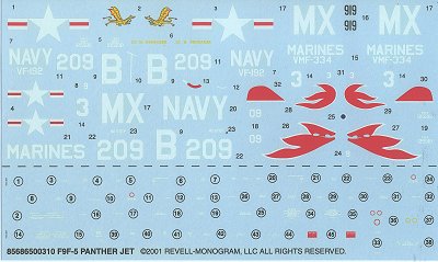 As mentioned, the AN/ARA-25 fairing, which makes it’s first appearance in this re-release, is not used with either squadron featured in the kit. But it does open up the opportunity for several more new schemes never before released on aftermarket decals. (At least two decal outfits are preparing to release new markings for the Panther.) I know first hand that this piece was overlooked and forgotten for over a decade and only by chance was it discovered in time to include in this release. Very classy of Revell to include it even though they didn’t have time to change over to aircraft markings that could take advantage of this item.