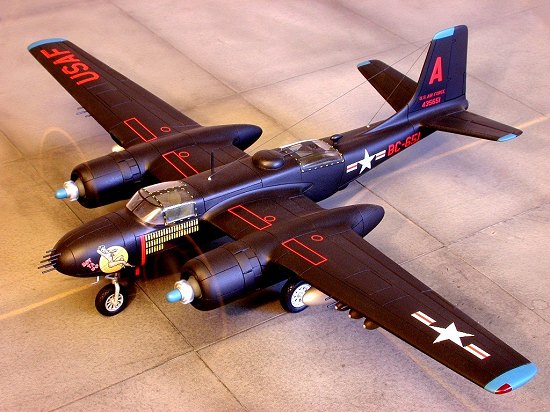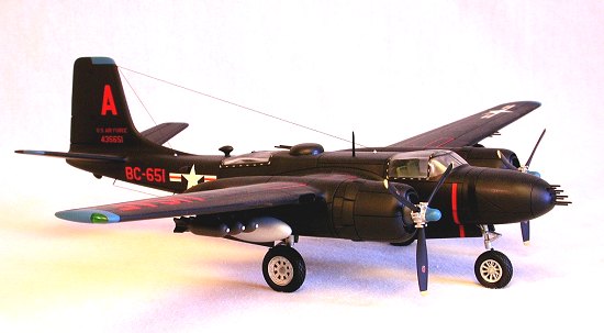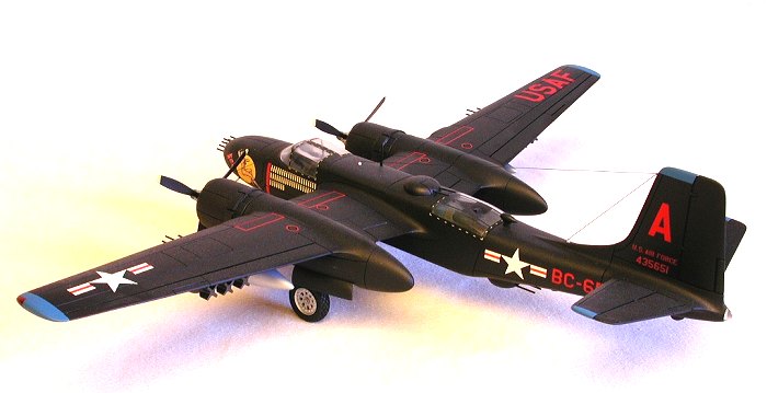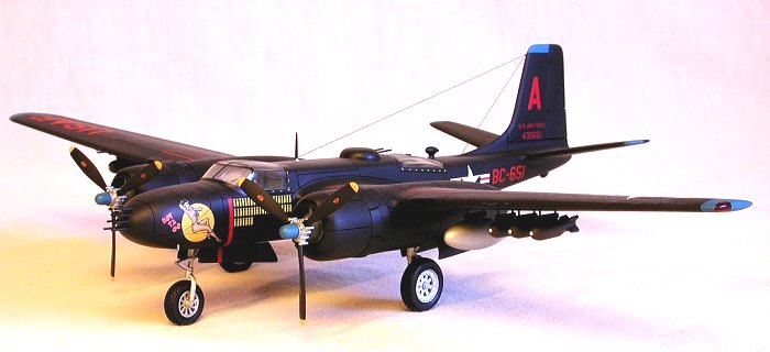 I had already decided that this model would be my tribute to the veterans of the Korean War who had put it all on the line fifty years ago, but I was less that thrilled with the prospect of just another silver airplane. True, a number of olive drab/neutral gray examples have been documented, but as much of the Invader’s ROK service was as a snoop-and-poop nightowl, I leaned toward an all-black scheme with enough individual unit color to provide for some interesting contrast.