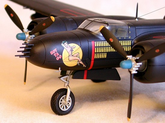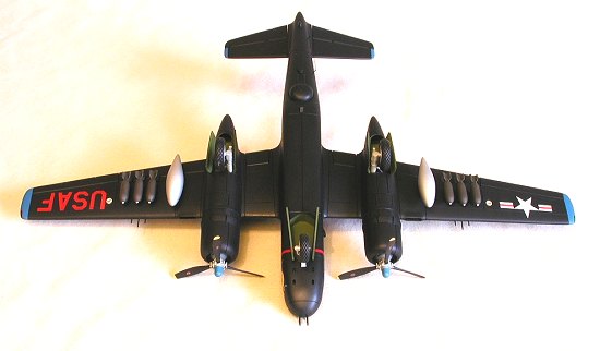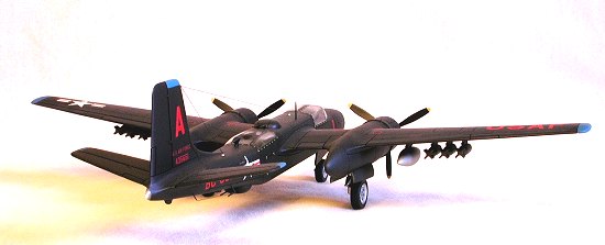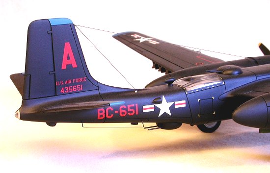 The back cover illustration of Squadron-Signal’s In Action volume provided the inspiration for what would become a prototypical Invader of the period; an all-black airplane with medium blue wing, fin, and stabilizer tips and propeller spinners plus gaudy girlie artwork…just what the doctor ordered.