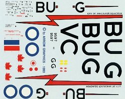 All in all, these make up into elegant looking models. Despite the hassles of trimming I mentioned before, if you cut the images out close enough what is left of the film is nice and transparent and with a shot of sealer the film pretty much disappears. I would highly recommend these sheets to RCAF fans or any one that seeks a ‘stang of a slightly different color. One thing I would recommend is seeking out an alternate source for the stencils as Arrow’s printing process does not quite seem up to the task of printing these tiny letters. A good source for Arrow Graphics decal sheets is FlightDecs http://www.tbaytel.net/fldecs/