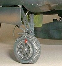 The gear itself, was in several pieces and quite fiddly and was touchy to install but looked the part after finish, but just not very strong. The nose wheel gear is real flimsy, CE makes a metal replacement ( or did), but I decided to drill and install a pin inside for strength and while I was at it, I turned the wheel a bit for a little AMS character and besides, the Nose gear door will add a lot of stable strength when finished anyway.