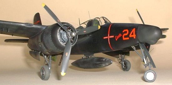 Of course, the most favorite paint scheme (color) for this bird was for the Black night fighter version even though, some of them were still painted the Dark sea Blue. As matter of fact, they were all painted Blue and some were just painted over with the flat Black ( I used glossy because it was actually “blacker” and helped with decal application but made “flat” when finished etc.). The landing gear for the most part was left Blue and that is why they looked the weird faded and grungy looking weathered beat look after a while in use. As the plane was washed, used, and wiped down and chipped, the Blue color was showing through and the paint was peeling bad in some places.