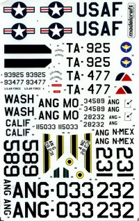 The kit’s decal sheet provides markings for six different aircraft: two Air Force training command aircraft, one from Hondo AFB, Texas and the other from Columbus AFB, Mississippi; and four Air National Guard aircraft from Washington, Missouri, California and New Mexico. The decals are quite good, respond well to setting solutions, and lay down nicely on the finished kit.