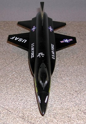 This X-15’s was painted an overall black. I painted the entire model with several coats of Testors flat black. After the paint had thoroughly dried, I applied a few coats of Glosscoat.