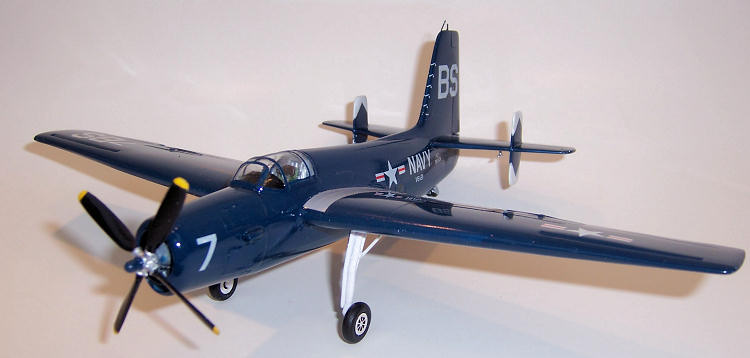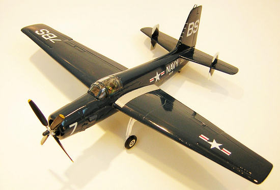 The Guardian was whelped late in WWII, too late to see action therein, as an anti-sub replacement for the TBF Avenger. A two-variant flight would form a hunter-killer team. The hunter version (also kitted by Ace) found its prey with a tumorous radar bulging from its belly – hence the laterally stabilizing vertical finlets. The killer would finish the job with two tons of bombs, depth charges, a homing torpedo, rockets, drop tanks, and a search-light pod; hence its general heft. Detailed technical histories can be Googled from assorted sources, some asserting fascinating claims, notably that a turbojet was mounted in the tail. That’s WWW, Folks; for Wild Wacky Web.