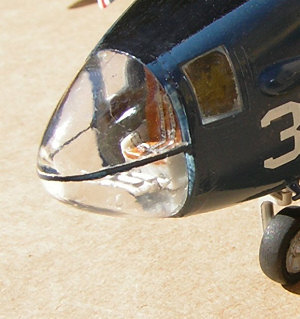 Alas, when the masking tape came off the windows nothing could be discerned. Two exceptions: PEB radio racks added to each side of the nose compartment hint at realism, and additions to the flight deck definitely improve the otherwise therein emptiness.