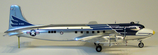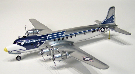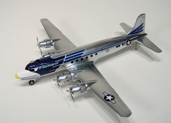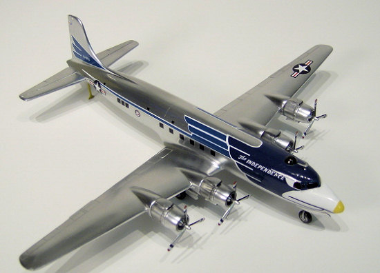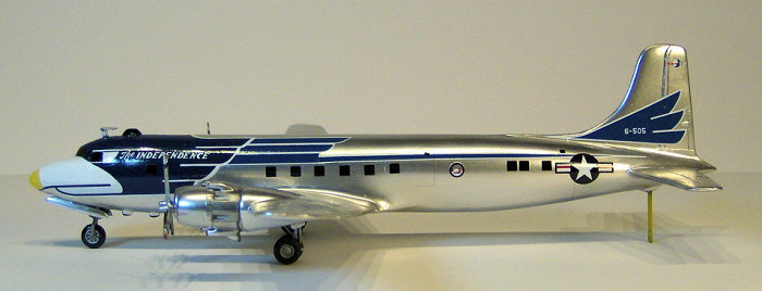 As indicated on the back page of the instructions, the Independence was the only C-118 and is 60 inches shorter than a standard DC-6B (C-118A). The kit is of a standard DC-6B, so to be totally accurate .416 inches (10.56 cm) of forward fuselage needs to be removed.