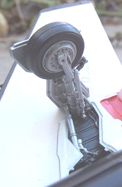 - The model is very likely based on a museum aircraft. Main landing gear struts are almost completely collapsed with main gear doors molded as a single piece. The real doors are two pieces horizontally split where the wheel bulge begins. There are retraction locks molded onto the main gear retraction links and airbrake actuators. The instructions even tell you to paint these red.