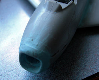 center it in the nose. Once I did this, I glued part A24, the intake nose, onto