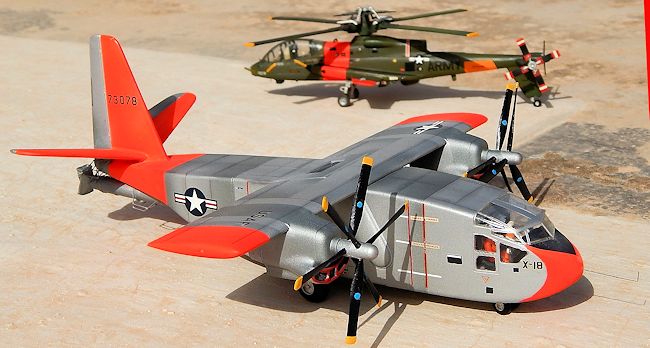 the Tri-Service XC-142A, tilt-wing VSTOL transport. The X-18 has a length of