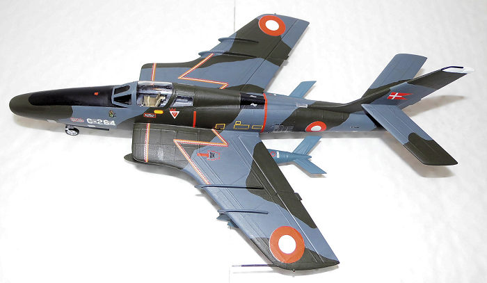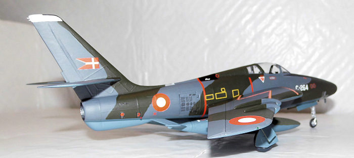 The decals were applied uneventfully with the exception of the registration codes, as I should determine the exact style used for my chosen airframe (the numbers had several styles and could be either black or white). After that had been confirmed, I put on the registration codes plus the squadron badge, which came from an IPMS Denmark special anniversary sheet. When the decals had dried a gloss coat sealed everything in and after that had set the final flat coat was applied.