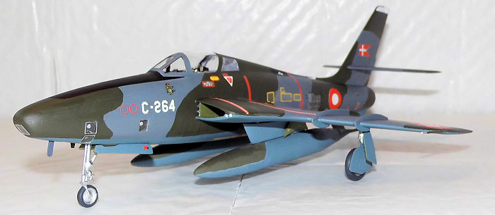 Several modifications were introduced in Danish service. In the beginning of the 1960s the obsolete US supplied camera equipment was replaced with modern British Vinten cameras; as were the Republic ejection seats – replaced with Martin-Baker Mk.DT5 / DT5A (depending of time of installation) seats. A more odd modification was that the splash guard on the nose gear was removed from 1960 onwards and a rod was added to the gear leg.
