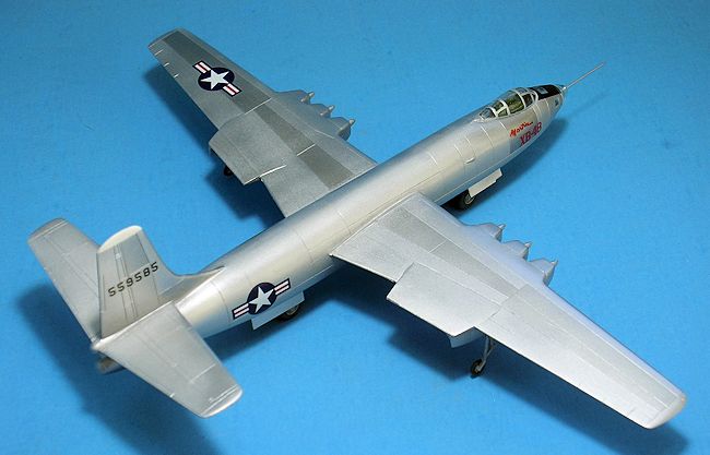 Lastly, most photographs show the XB-48 with what was probably an instrument probe protruding from the nose. The small 144th scale model doesn’t include one, so I drilled a small hole in the nose and stuck in a needle to somewhat replicate one.