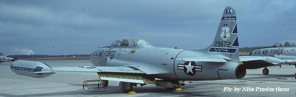 Note: 186 FIS T-33A photo taken in October 1976 at Tyndall AFB, Fla. According to this photo and other 186 FIS planes I've seen, Xtradecal missed the blue color. Ed