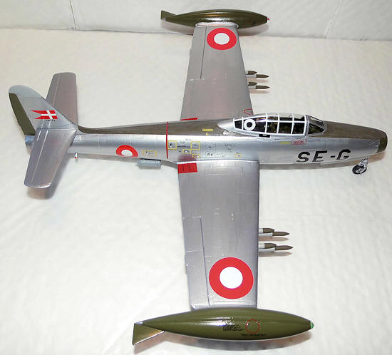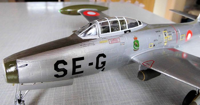 As to the decals there were also some issues that needed to be worked out. I had bought Stoppel decal sheet no 48-133 but at that time without knowing exactly which machine to make. When I decided to model the SE-G, I realized that this particular aircraft could not be modeled from this sheet as the code letters were not included (you can make target tugs, training variants as well as late style camouflaged aircraft and the recce configured F-84s, so-called RF-84Gs). The only solution seemed to be acquiring the 48-132 sheet, which did include the letters to make SE-G. As I was going to make an F-84 from the late 50s I also bought the squadron badge sheet (007048) to get the squadron badge for ESK 730.