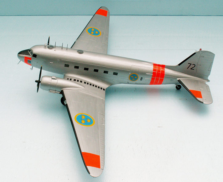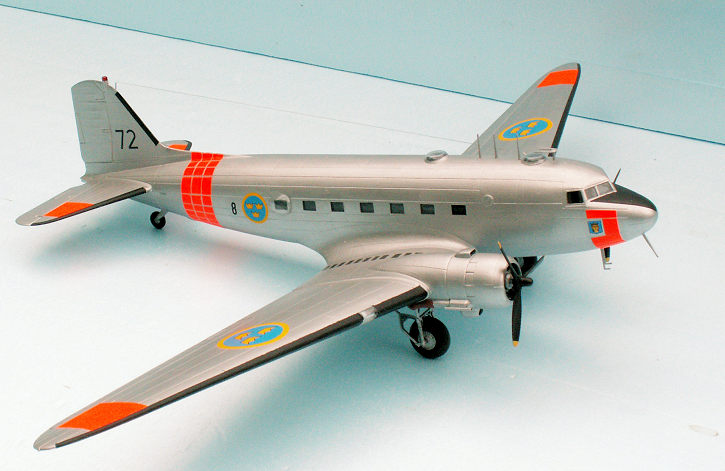 It was a genuine challenge to build the Swedish Tp 79 Dakota. It is a very fine kit, and everybody, who takes an interest in this famous military transport plane will be able to produce a good looking model from the kit. It is warmly recommended for beginners as well as more experienced aircraft modelers. The C-47 was also called C-48, C-53 and C-117, and even more. If you are not American or British, there is a challenge to build a C-47 of your own air force. There are lots of different decal sheets on the after-market, and most likely also one to be applied for your special model.