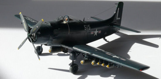 | NOTES: | Kit backdated to an AD-4. Pavla and Hobbyboss Panther bombs, Eduard Zoom and EuroDecals #106 used. |