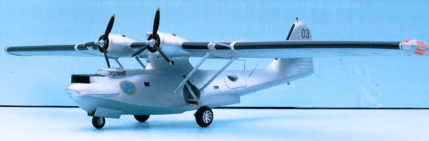 It was a challenge to convert the Revell PBY 5A to the Swedish CANSO edition, and I can recommend this ancient kit to anyone, who fancies the Catalina and just wants to build an OOB model. Nose weight is absolutely necessary if you want the undercarriage in down position. I will recommend to paint the model, even if it is to remain black. There are several after- market decal sheets for the Catalina with other color schemes, if you find an all-black Cat to gloomy.