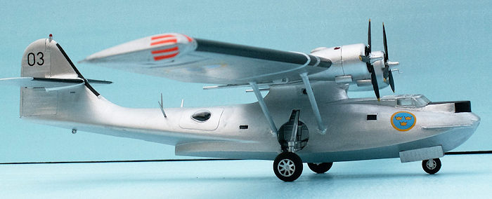 There is a special decal sheet covering Swedish seaplanes: He 115, Do 24 T and PBY 5A. This sheet covers all three Cats serving with Flygvapnet: 001, 002 and 003. 001 is the one preserved and on permanent exhibition in the Swedish Air Force Museum at Malmslätt. 002 was the plane that was shot down by a Soviet MiG 15 fighter, and 003 is the plane that was scrapped in 1966. My choice was the 003, since my son wants to build the 001. If I had chosen the 002, it would not have been necessary to replace the turret with the radar dome. In 1952 the Cats did not have a radar.