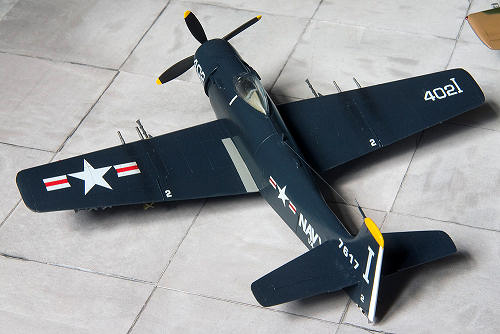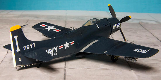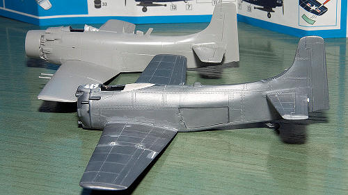Looking at references in Squadron books, it seems that although the AD-6 did not enter service until the Korean conflict was over, there were quite a few AD-6’s in service in sea blue in 1955-1956. Upon checking the kits dimensions and shape with that of the Hasegawa kit, I found that it was very close in most aspects. The most obvious differences are the canopy position and the canted tailfin. It also lacks detail and is covered with 1 (scale) inch rivets which is expected from a kit more than 40 years old. But the sea blue scheme would not reveal much surface detail and I decide to build it along a Hasegawa A-1H and compare the differences as I go along.
