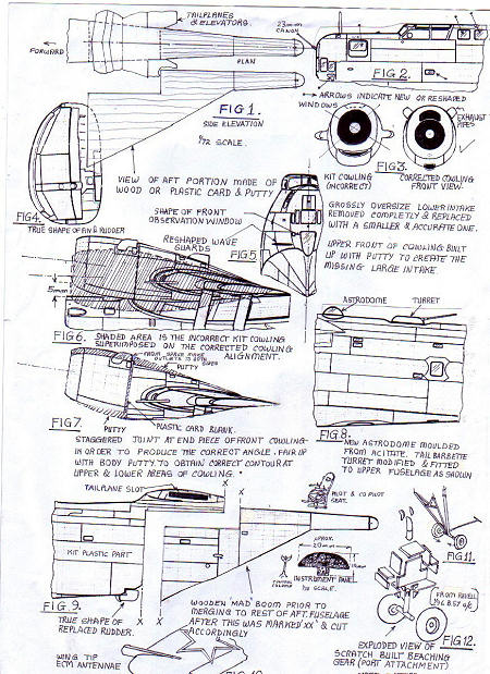 A major fault in the kit lies with the angle of the center line of the engine cowlings with the horizontal. A quick check with FIG.6 or reference to the 1:72 scale plan side elevation will reveal the new angle of elevations. This needs to be