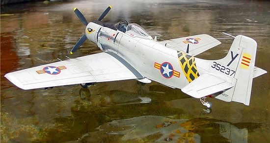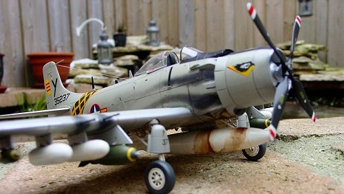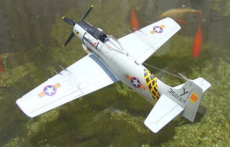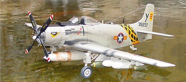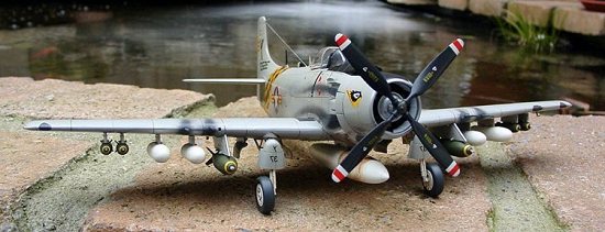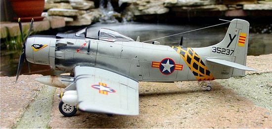 VNAF Skyraiders did not have the arrestor hook installed so I left it off. The tail wheel can be built as the solid rubber or the inflated version. VNAF Skyraiders mostly had the solid rubber variety. Fit is good.