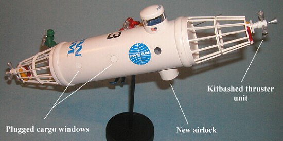 Since Monogram's Space Taxi is a hypothetical vehicle -- essentially, a model of a model -- I had no qualms about making two major "improvements" to the good Herr Ley's design based on our four decades of human space flight experience.
