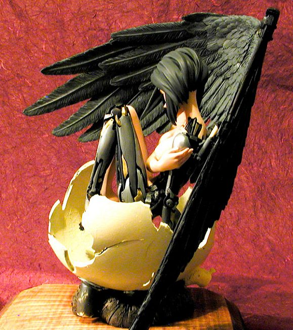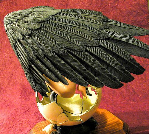 even out the step and files to recut some of the lost feathers. I added the wing using the two resin plugs