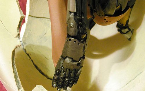white oil paint. This was then attached to the left shoulder and the hydraulic