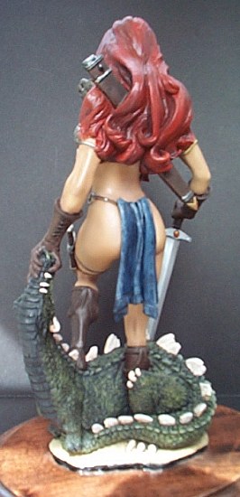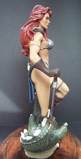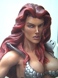 This is a very nice 1/6 resin figures of the famous or infamous Fantasy character Red Sonja. She first appeared in Conan novels and comic books. The popularity of this character spawned a motion picture of the same title, starring Arnold Schwarzenegger and Brigitte Nielsen. She was one of the Conan female characters that was on equal footing with Conan. IT was nice to see that someone finally made a full figure of this great Femme Fatale!