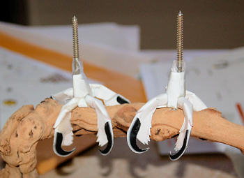 resin glue again, I attached the owl feet to the perch, with large screws going