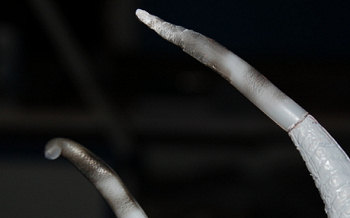 steel needles for upper body strength. I added on ¼” of sprue to the forearm,