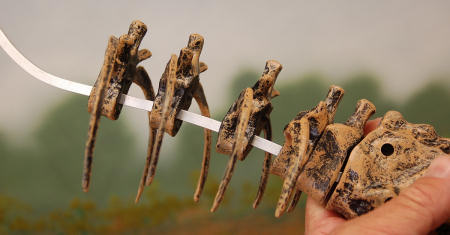 The individual ribs and spine bits slide over the aluminium spine without a hitch, just make sure that you get them in the right order, especially if you sanded off the numbers. I laid mine out on a long table prior to painting, and used a fine sanding cone in my moto-tool to remove the numbers and injection marks.