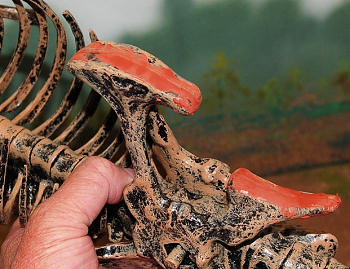 The whole affair was painted in a thin red wash, three times, and allowed to dry between each wash. This glazing effect brings a lot of depth to the project, and even those old bones seem to be lively.
