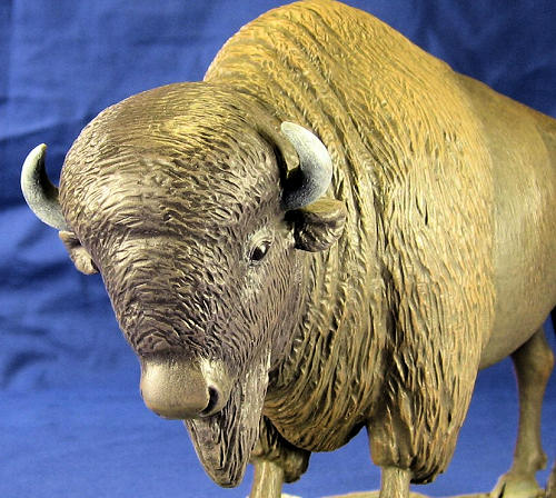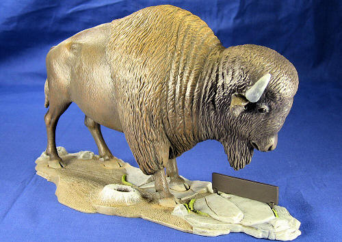With all of the painting finished, I glued the big bison to the base, dusted some earth-colored pastels onto his hooves, and called it done. I then immediately went out and had a big buffalo burger to celebrate. It was yummy.