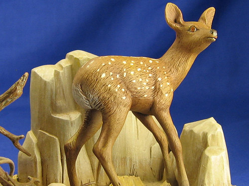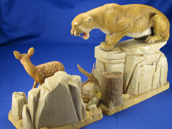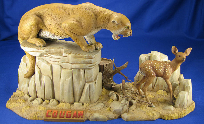 With the painting stage over, I used CA glue to attach the deer, branch, and cougar to the base. I brush-painted some Testors Gloss on the animals’ eyes and mouths, and the model was done.