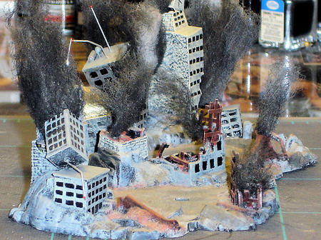 styrene to the inside of the knocked over buildings and evergreen strips to make