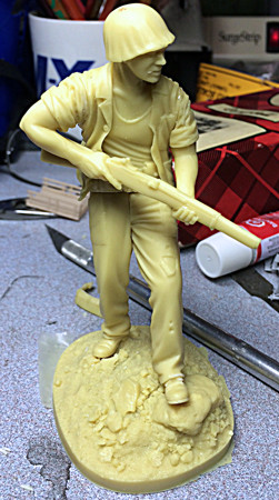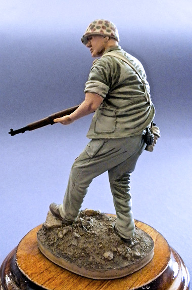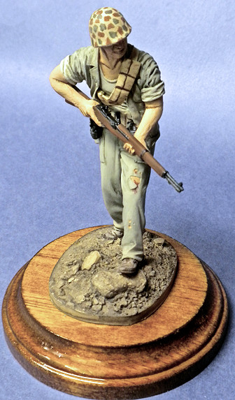 Once again, Verlinden comes through with a great looking figure of the primary bearer of warfare: the ordinary grunt/foot soldier who must fight it out to the end in the worst imaginable conditions. The US Marines have to be some of the most unsung heroes of World War II, and those who fought so valiantly and long on Iwo Jima certainly earned their place in America’s military history. If you are into military or other figures, I highly recommend this kit. The figure is a small “salute” to the US Marines who fought and won the Pacific campaign against the Japanese during World War II.