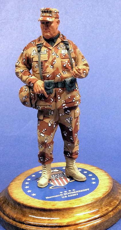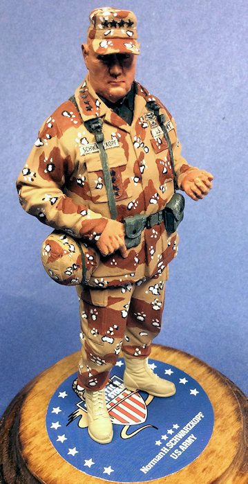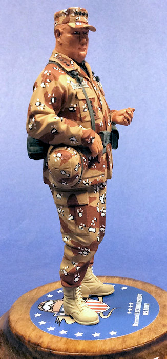 There you have it. This is another outstanding Verlinden figure, and I am beginning to get obsessed with doing these for two reasons: I can finish them in a relatively short time; and they take up significantly less room when I display them. When completed, the figure presents a great likeness of Stormin’ Norman. If you are into military or other figures, I highly recommend this kit.