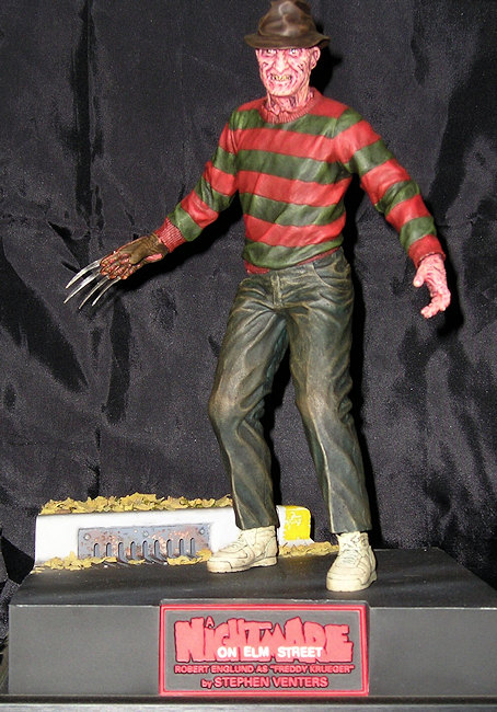 Everybody has to sleep sometime! That is what makes the Freddy Krueger character in Wes Craven’s A Nightmare on Elm Street, brilliantly played by Robert Englund, one of the most unique and terrifying villains to emanate from the horror movie genre. Once you fall asleep he’s got you! Quite a few years ago, at one of the ResinHedz trade shows, I picked up Screamin’s™ 1/6 scale hollow vinyl figure kit of Freddy Krueger with the intention of merely slapping a paint job on it and putting it on the shelf. It didn’t quite work out that way.