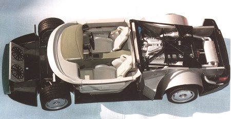 The XJ220, the first British Supercar, went into production in the early nineties following the release of a concept car at the 1988 Birmingham Motor Show. The XJ220 was to be limited to a production run of 350 cars, most of which were pre-sold. Featuring two doors, a mid-engine configuration it is powered by a 3.5 litre, DOHC, twin turbo-charged V-6, which had been developed for the race going Jaguar XJR-11 sports car. The engine was subsequently modified for street use, being "limited" to producing 542 horsepower at 7000 RPM with the ability to exceed 342 kph. This, in the vernacular of Bill Cosby, can be done "in any side street"!