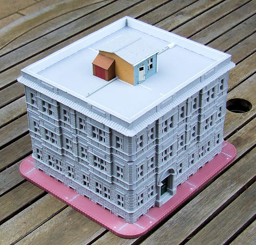 x 9 inches) and a height (including the extra storey and rooftop hut) of