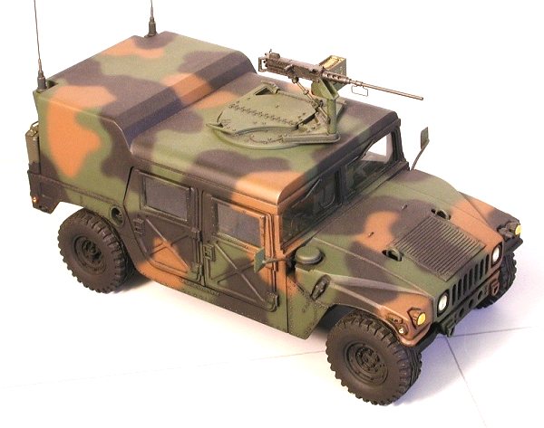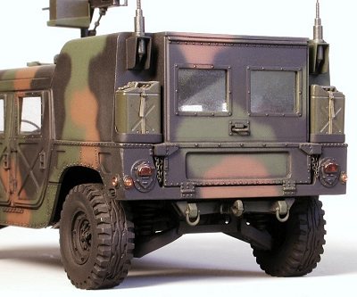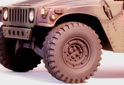 The most significant shortcoming with these models is the poorly molded wheels and tires. Comparing a kit finished with the stock parts to one supplemented with the more superior resin replacements is akin to likening a Tonka Toy with a professionally-assembled Pocher kit. No matter how skillful the detailing and finish, the model with the plastic pieces will look juvenile by comparison. Sadly, the Verlinden Humvee wheel set has been OOP for about ten years. It’s a real shame too, because the casting on the wheel hubs and tire treads was superb.