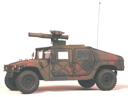 The roof and armament for these two models were assembled next with some overlooked details added where appropriate. I am intimately familiar with the Browning .50 caliber M-2HB but what I know about the TOW launcher would fill a thimble (mebbe!). Several photos in Army magazine were instrumental when detailing this weapon. The basic shape is correct so I refined the optical and IR sights, added a breech lock handle, and installed the interface cables from the launcher to the GCM box.