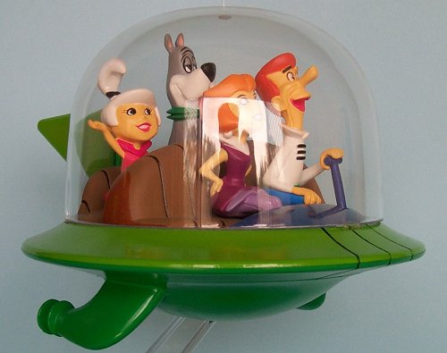 On September 23, 1962, Hanna-Barbera showed the world their vision of everyday family life in the United States in 2062, premiering an all-new prime time series - The Jetsons, with a catchy theme intro that went: Meet George Jetson, his boy Elroy, daughter Judy, Jane his wife.