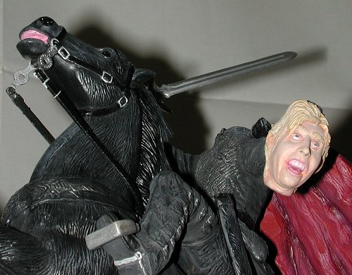 When the painting process began, it presented a unique problem that I did not anticipate. For those of who have not seen the movie (and even for those who have) the Horseman and cape, the horse and saddle and all of the attachments are black. In order to do this I would have to work in different shades of black - or dark grey if you will.