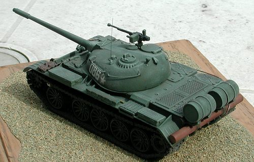 axis and had power elevation. It can easily be distinguished from the T-54 by