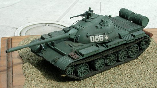 This kit comes molded in two colors, medium green for the tank parts and black for the tracks. PST also makes a T-55 kit in the same scale and the parts for the T-55 are included in this kit. However, there are no instructions included to do the T-55 version, but a good armor modeler would have no trouble substituting the correct parts. The kit’s underside is fully detailed with no numbers or company logo to sand off. There is no interior detail at all.